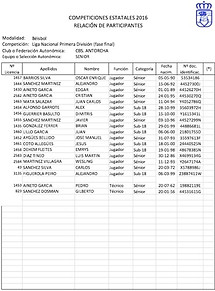 Javier Sánchez, Pitcher; Juan Carlos Mata, Catcher; Alex Martín, 1ª Base; Wesling Martínez, 2ª Base; Luis Díaz, 3ª Base; Alejandro Sánchez, capitán y Short stop; Oscar Barrios, Left Fielder; Edgar Aineto, Center Fielder; Cristina Aineto, Rigth fielder; José Manuel Aigües; Outfielder y Carlos Sánchez, Pitcher.